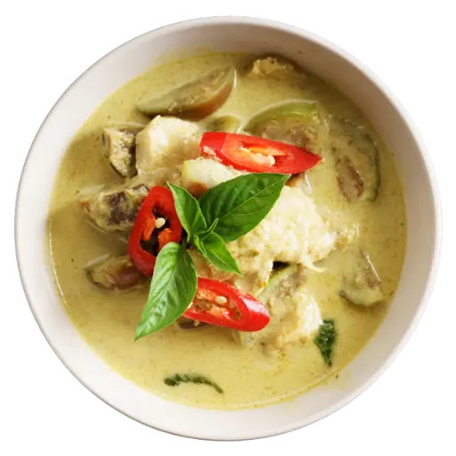 Curry vert au lait de coco, herbes fraîches et notes pimentées. Crémeux, intense, et plein de fraîcheur (plus relevé que le curry rouge).