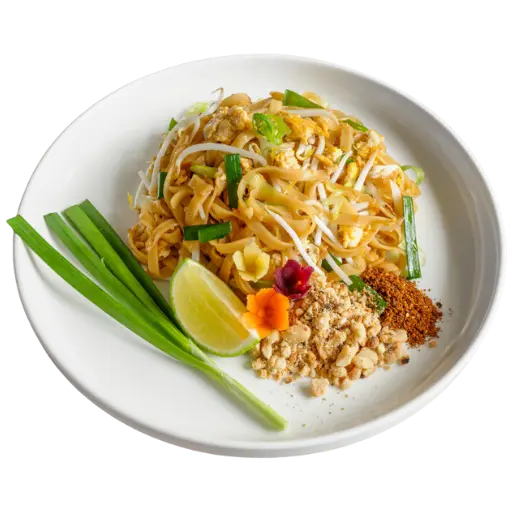 Nouilles de riz sautées, sauce tamarin, œuf, cacahuètes et citron vert, avec protéine au choix. Le best-seller thaï : équilibré, gourmand, légèrement sucré-salé.
